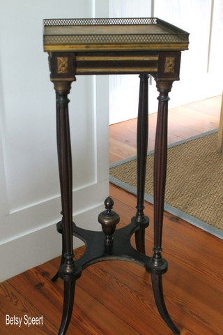Remember her little table that stands between the twin beds in her guest room that we are working on and having a really good time doing all this cool stuff and decorating and playing together and writing run on sentences??????